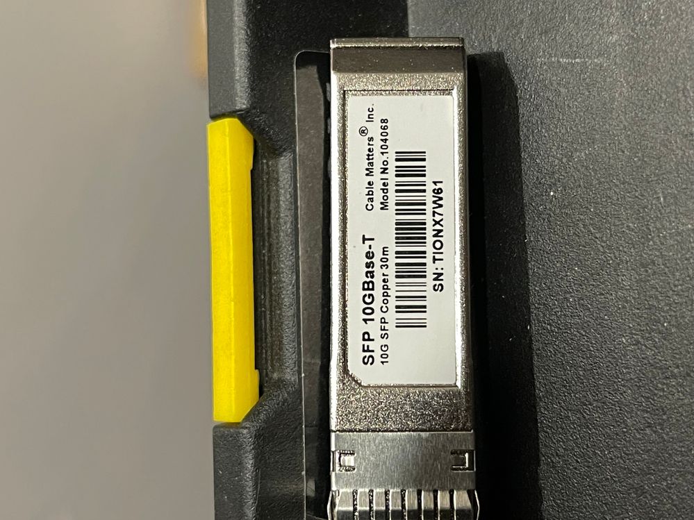 I have a Cable Matters branded 10Gb SFP to RJ45 transceiver now and I'm seeing a problem when I have it installed in the XS switch and the CAT6A STP cable running from the XS switch to a GS110MX connected to it's 10Gb port, if I have a Apple TV connected to the GS110MX switch, streaming begins for about a minute the stops. Then all internet and IP addressing services on this segment of the network stop working. I have to power cycle the XS switch to get all services back up and running.