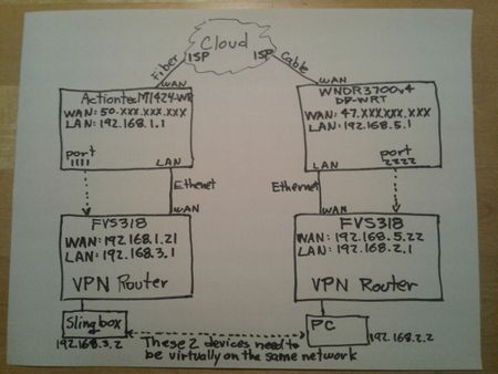 Connecting two FVS318v2 VPN Servers each running under a gateway routers - VPN tunnel between them