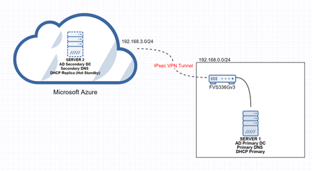 This is my current set up. I only have one physical (host) server (192.168.0.0/24) and a direct tunnel an Azure VM (192.168.3.0/24), serving as my secondary AD server, DNS, and DHCP. Ho...