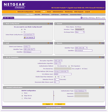 One more time.... RemoteAccess IPsec XAuth w/certificates on FVS336Gv3 <-> Android 6.0.1