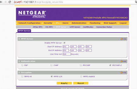 Hello, we have FVS336Gv2 with firmware 3.1.1-08, I have set up a PPTP VPN server and VPN connection works but: 1) LAN network (192.168.1.x) is not reachable (I noted that routing table doesn't incl...