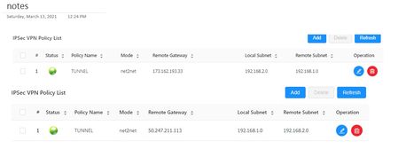 Both BR create their own LAN subnet. 192.168.11.0 (Office) and 192.168.21.0 (remote)