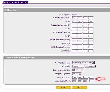 I have a real simple configuration for a Client-to-Gateway VPN setup. Basic tunnels seem to be working fine, but when I try to setup a Mode Config policy I'm getting an error upon connect and can't ...