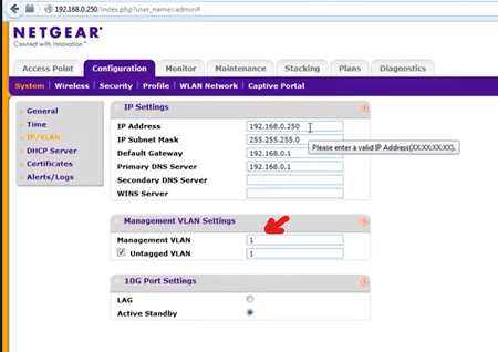 Cant connect to Netgear WC7600V2 default IP 192.168.0.250 after changing the management vlan