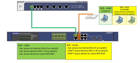 Hi, I'm in trouble to end my configuration. Here's the network structure : Goal : - Add a Guest Wifi (VLAN 600) which can only go on Internet. Hardware : - Netgear SRX5308 [4.3.4-2] - Net...