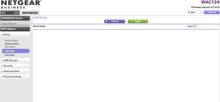 Hi, just got a WAC124 AC200 and set it up, all working fine. One of the pages in the advanced setup "LAN Setup" when selected gives some info which disappears and you are left with a blank screen...
