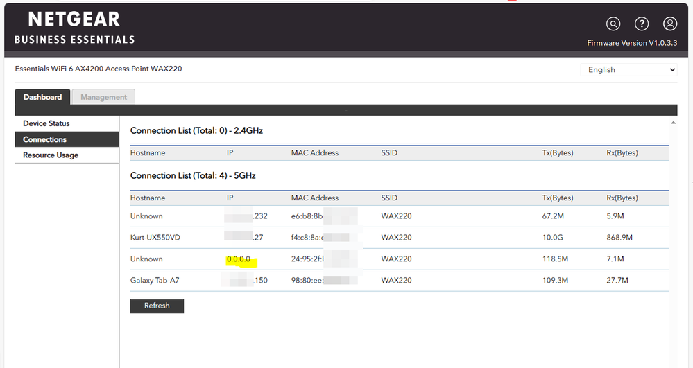 What Im seeing with he WAX220 is that clients will appear with No IP address as you see below even though they are working fine and clearly pulling a DHCP from the router.
