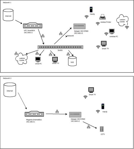 Hallo liebe Community Hätte da die ein oder andere Frage. Ich habe aktuell 2 Netzwerke (N1 & N2) diese sind geografisch getrennt. in beiden ist ein Nighthawk X4S R7800 integriert, beide sind im ...
