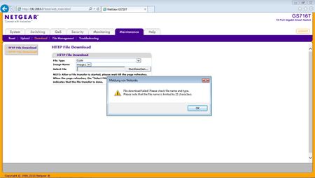GS716T Firmware update nicht möglich... Auswahl Code, image2, und Datei C:\GS716Tv2_GS724Tv3_v5.4.2.27.stk, abschließend laut Bild Informationsmeldung. Hat jemand bitte einen Plan? Vorab Danke! ...