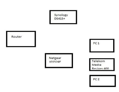 Hallo ich habe ein Problem mit dem JGS524E und meiner Diskstation Synology DS415+ welches nicht mehr in den Ruhemodus wechselt sobald der Switch dazwischen ist...! Angeschlossen ist es folgender maß...