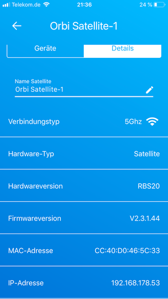 Die Einstellung Daisy-Chain benutzt du nur in Kombination mit dem (den) Satelliten, die Satelliten verbinden sich entweder miteinander oder mit dem Router, je nachdem, welche Verbindung am besten ist. Dies gelt auch für Fast Roaming, welches du nur in Kombination mit dem Satelliten verwendest. Diese beiden Features kannst du also deaktivieren.