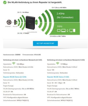 Hallo zusammen, habe den X6S Repeater erfolgreich installiert, er erreicht aber im 5 GHz Band nur 866 Mbps und nicht die volle Geschwindigkeit von 1733 Mbps. Der X6S wird mit dem Router Nighthawk...