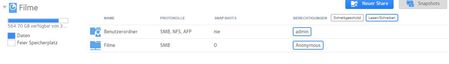 Erstelle eine neue Share und kopiere paar Dateien. Sind die Dateien in der neuen Share über Admin GUI und SMB zu sehen?
