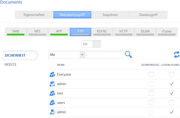 ReadNAS 102 FTP Benutzer Zugriffsrechte