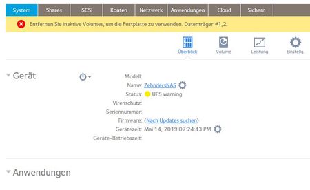 ReadyNAS 104 Entfernen Sie inaktive Volumes, um die Festplatte zu verwenden. Datenträger #1,2