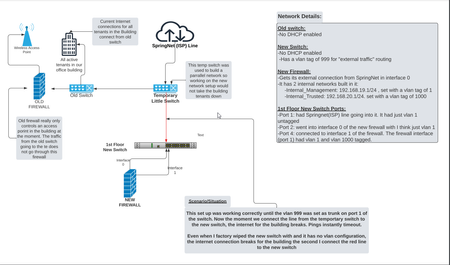 I have a GS728TPPv2 that I added to the Insight Cloud Portal. We are currently building a new network in our building while keeping the old network setup active. I put the ISP line into a dummy switc...