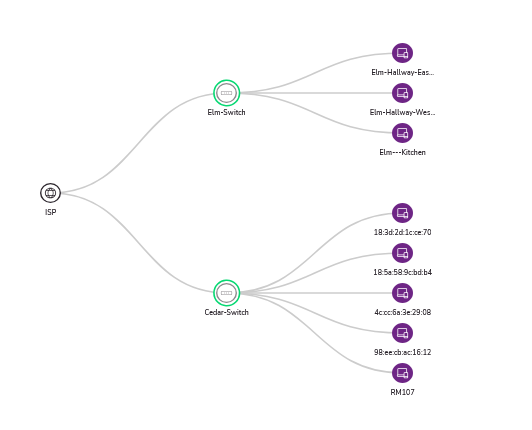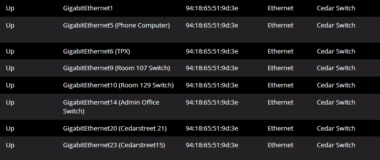 One of my clients has two GS724TPv3 Switches. One switch (Cedar) has 9 ports connected, but the Topology only shows 6. The summary page shows that there are 9 ports connected. The other switch (Elm) shows 4 ports connected in the Topology as does the Summary Page. However, I use another tool, Auvik, for mapping and it shows a 5th port in use.