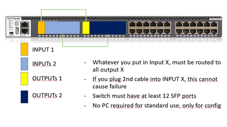 AKC_Alois wrote:split the ports into 2 or more groups of "Inputs" and "Outputs" where input would be routed to all outputs in that group.