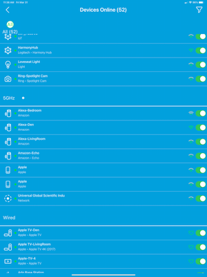 So after the app update(when they broke the security portion, I started getting a Blue background view where the devices were split by how they were connected(2.4g/5g/wired) and had a Allow access sl...