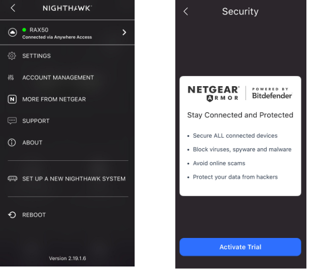 Open your Orbi or Nighthawk app and go to Menu, click on My Subscriptions, followed by Subscription."