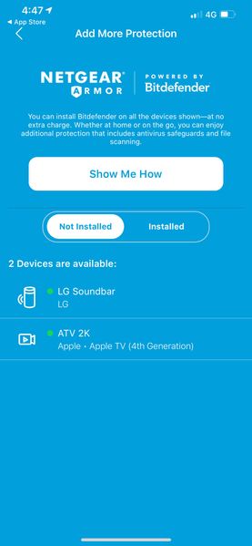 The Orbi iOS app's Armor Security dashboard is showing other devices that are eligible for Bitdefender Security to be installed - my LG Soundbar and Apple TV. Is this a bug as I cannot install 3rd ap...