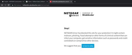 Hi, I recently enabled Netgear Armor power by Bitdefender on my Router RBR50. It was wokring great until i hit the wall. My Kids academic wesite http://brilliantlms.abcdteacher.com/site/userlogin i...