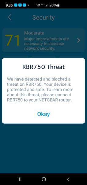 Have been getting this message frequently over the last several months, sometimes multiple times per day. Titled "RBR750 Threat" it says: "We have detected and blocked a threat on RBR750. Your ...