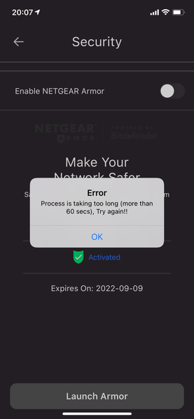 I am trying to reenable Netgear Armor via the iPhone app but it keeps timing out and not turning it on. Is there another way to turn it back on the router. Any assistance in getting...