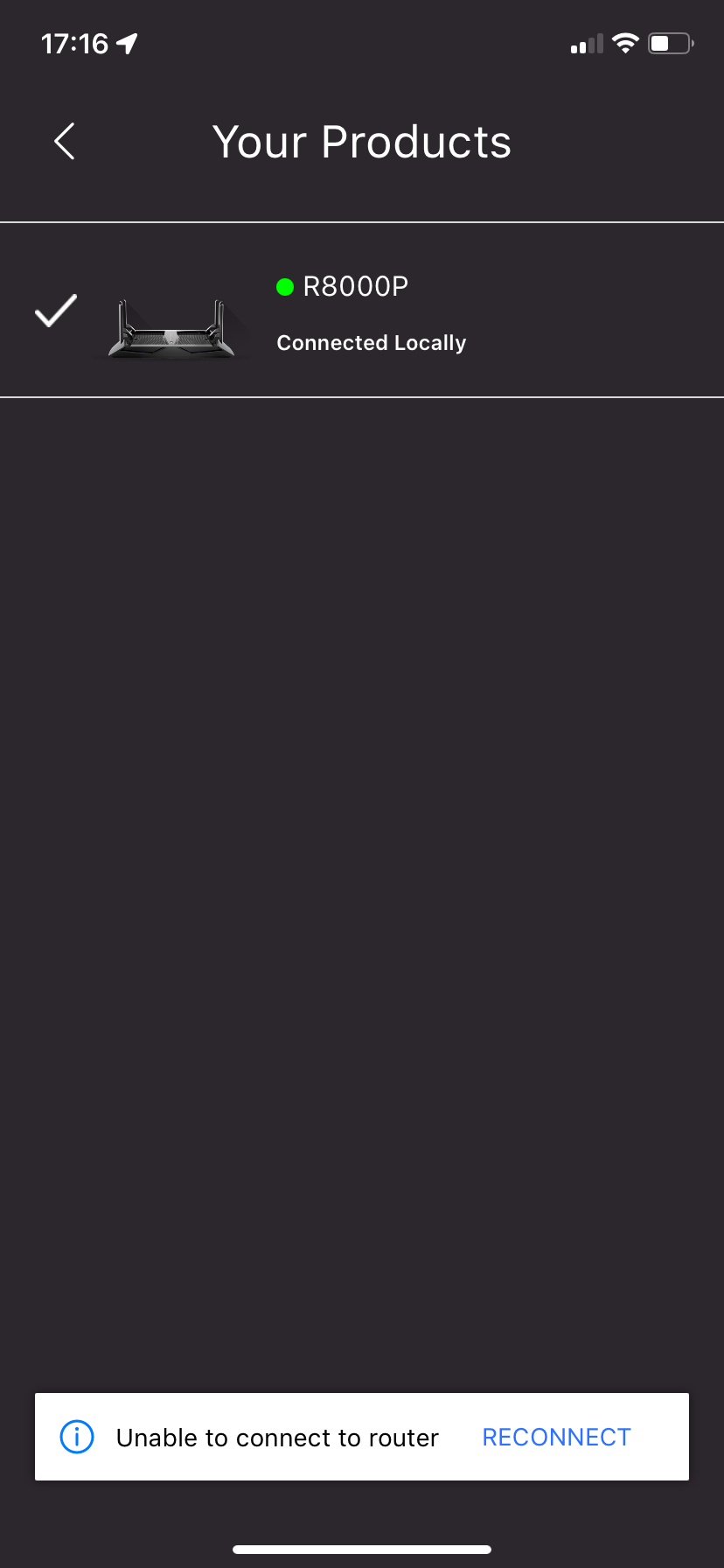 I am trying to connect locally. And cannot enable anywhere access without first connecting locally. As you can see in the pictures attached, it looks like the device is there but it is actual the R7500 and it is failing to connect regardless (probably bc the R7500 does not support the app anyway)