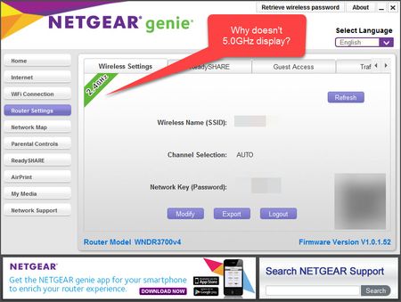 Genie Display of 5.0GHz Missing is Wireless Router Settings - WNDR3700ver4