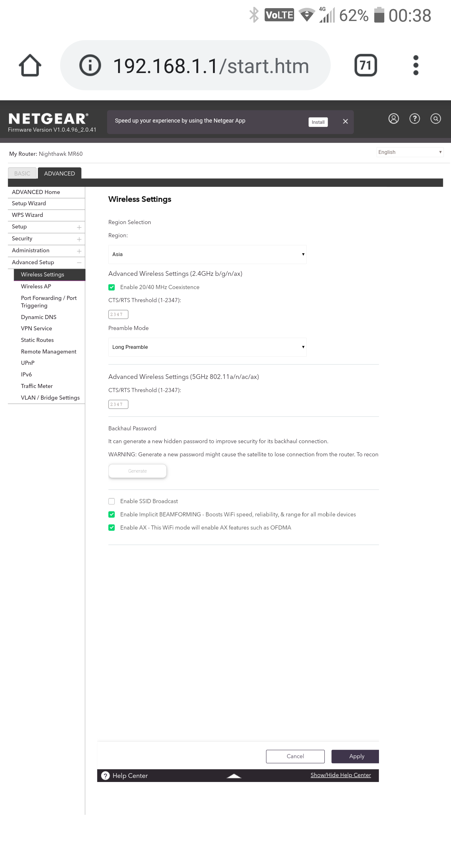 I bought Nighthawk MK62 but I'm not found where to hidden my SSID.... Please teach me. Thanks and Best regards.