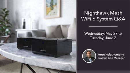 Update: The Nighthawk Mesh Q&A has been extended through Tuesday, June 2! Here is your chance to ask your Nighthawk Mesh WiFi 6 System questions to Arun, so don't miss out!