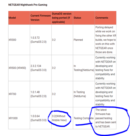When will dumaOS 3.2 be available alongside the latest firmware (greater than XR1000 1.0.0.64_1.0.49)?