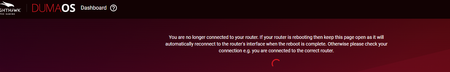 If I'm logged in to DumaOS, after a few minutes I get the message below: You are no longer connected to your router. If your router is rebooting then keep this page open as it will automatically ...