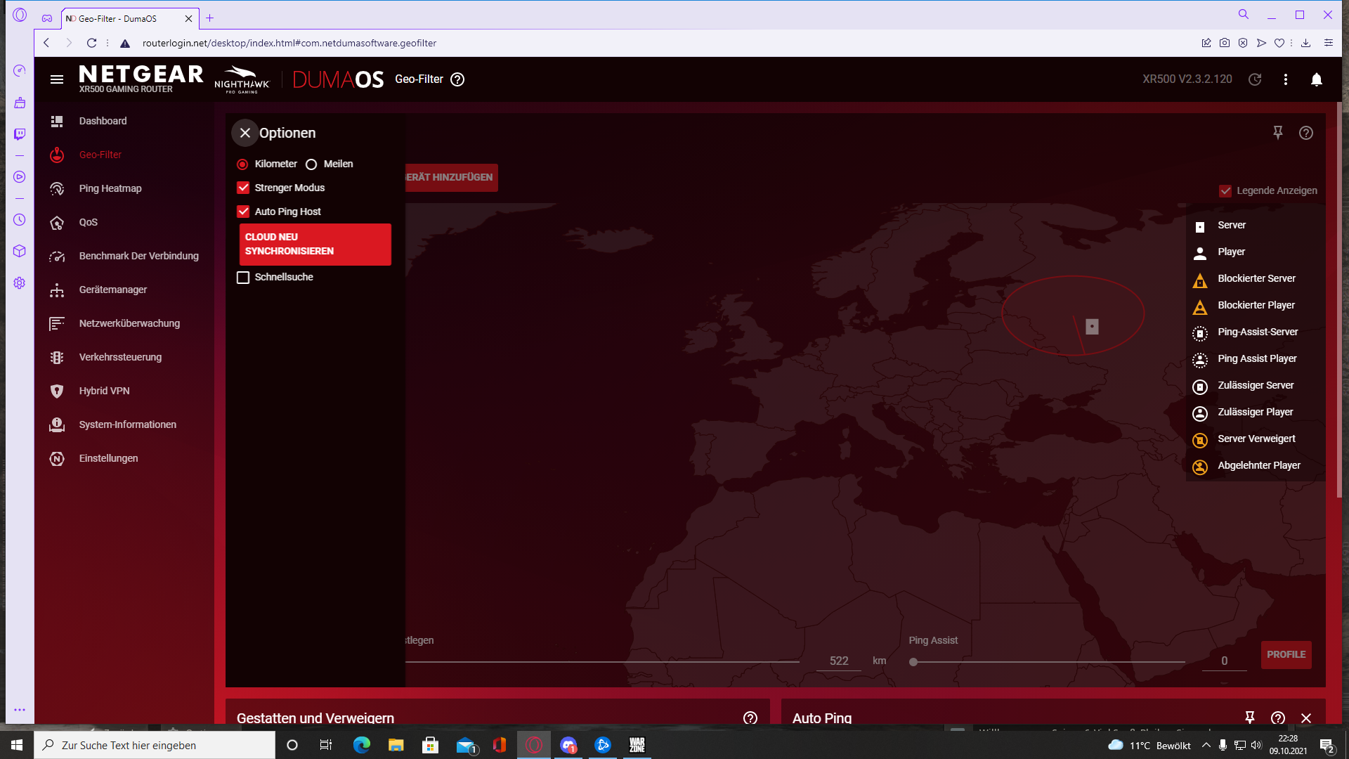 Danke für die schnelle Antwort. Es ist dann als hätte ich keinen Geofilter. Die Lobbysuche beginnt dann mit einem 27ms Ping und etwa bei 46ms hat er eine Lobby. Öffne ich dann nebenbei meinen Internet Explorer um zu schauen ob alles funktioniert, sehe ich zwar den Radius den ich zum Beispiel auf 500km eingestellt habe vom Geofilter aber nichts weiteres, Keine Server, keine Blockierten Server etc. Der Geofilter war auf Russland eingestellt...und wenn er dann funktioniert nach dem ich einen Neustart vom Spiel und Routerlogin gemacht habe dann geht alles ohne Probleme. Ich sehe es direkt am Ping weil er dann mit etwa 63ms startet und die Server werden mir auf dem Geofilter angezeigt. Ich hoffe das ist verständlich genug erklärt.