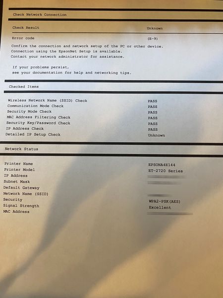 I have a XR500 running firmware V2.3.2.56 and a new Epson ET-2720. I am attempting to connect the printer to the XR500 over wifi, but I am getting an error on the Epson (E-9 - print out of error shee...