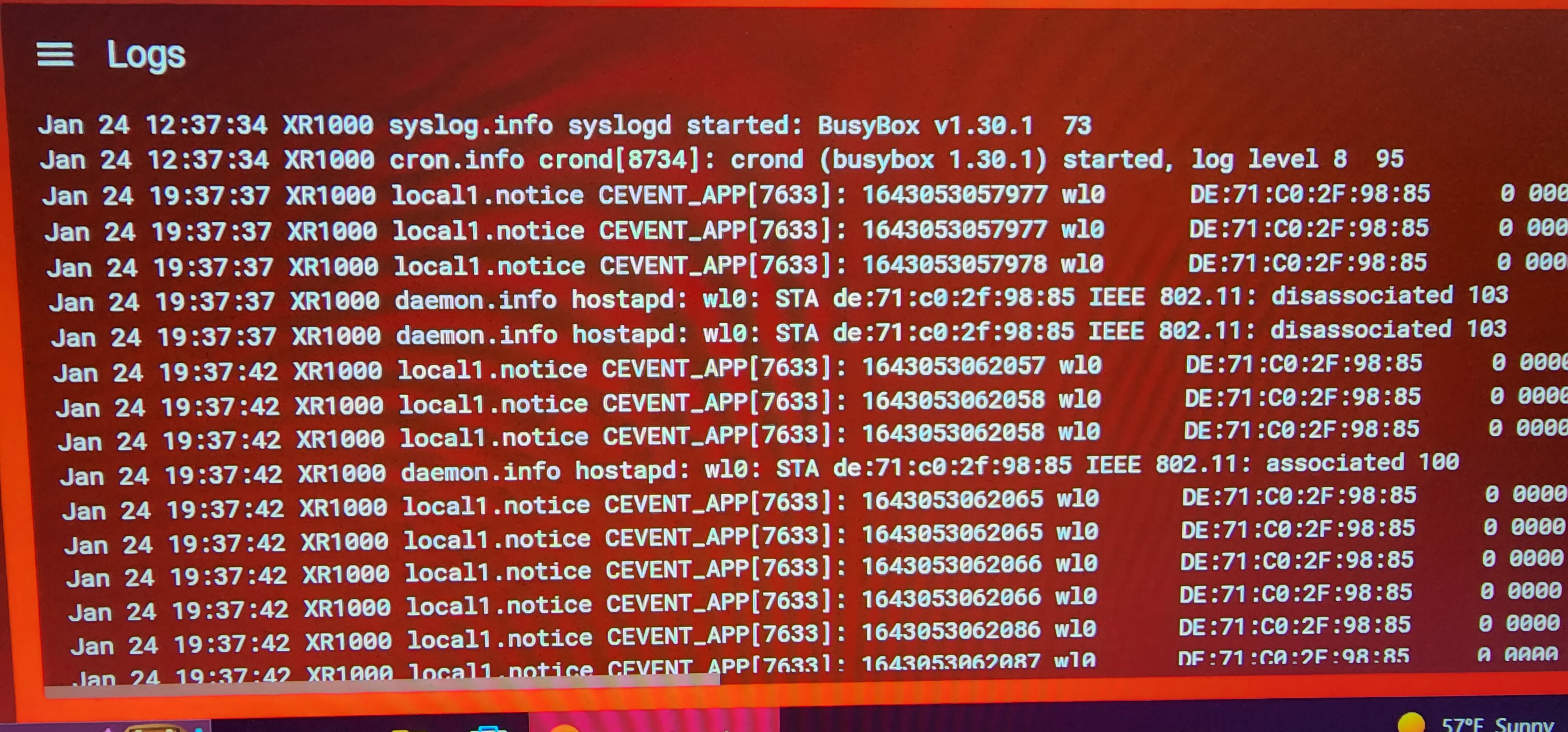 - PapaLungAug 09, 2022ApprenticeRestarted router and the Jan 24th logs came back right on que.