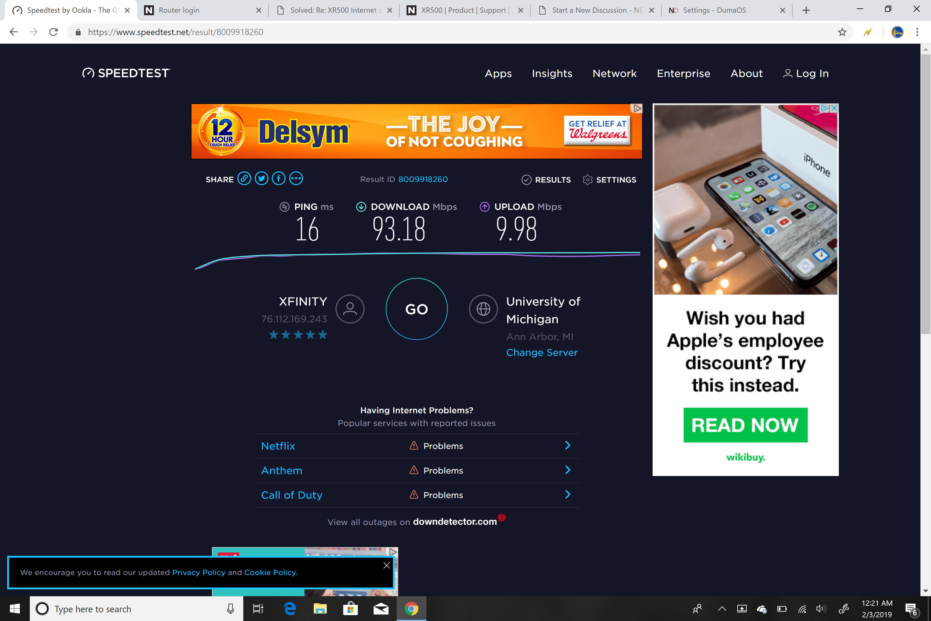 So today I bought the Nighthawk XR 500. I set it all up and thought I was good but the speeds on it were horrible. I was running faster speeds on my previous xfinity router. Ive seen these crazy speeds that this router can offer and im wondering how I can get those speeds. Im not too good at this network stuff so if anyone can explain to me how to make it better that would be amazing.