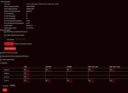 I was wandering if it was hardware issue. And I recently learned about the Debug page that allows me to change fan speed. I've lowered the threshold. Since the CPU temps been less than 60, I get 800s Mbps more often. Please, see attached picture.