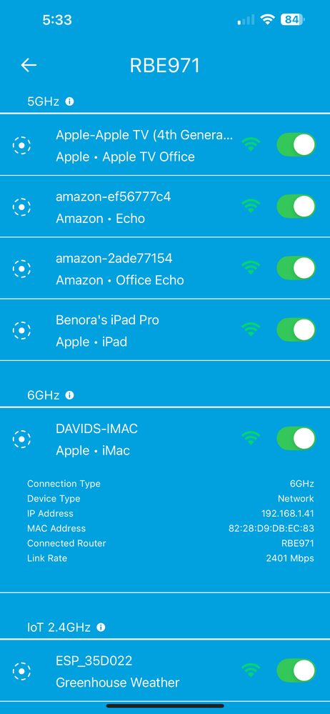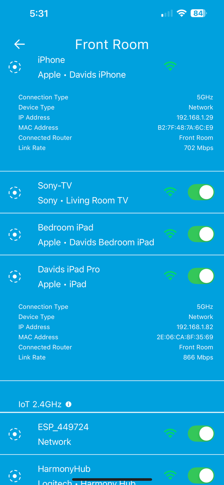 Sometimes I will bring up the app on my iPhone and see the first attachment when connecting and looking at what is connected. Pretty boring. Then sometimes I will get the second attachment that shows, speed, SSID, I can even turn it off? Any idea why? I would sure like to have the second one ALL the time. Next post will have the second pic.