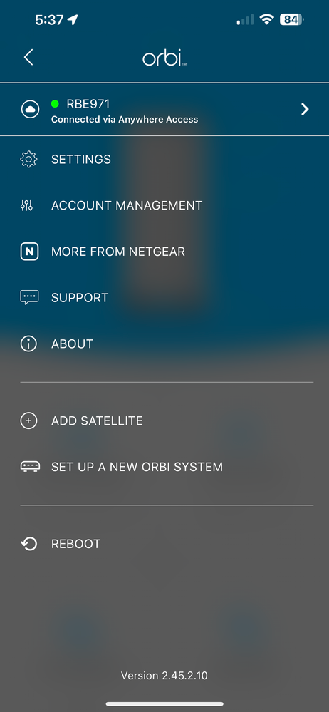 I've never seen the advanced settings screen appear on the Orbi app for me when I log in, it's always the main router screen with the RBR in the middle.