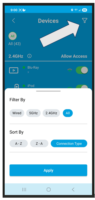 p.s. I have an old cell phone that is no longer in use. It has Orbi app version 2.44.0.4515 on it, and the Filter Icon appears in the corner the same way it does on the current app.