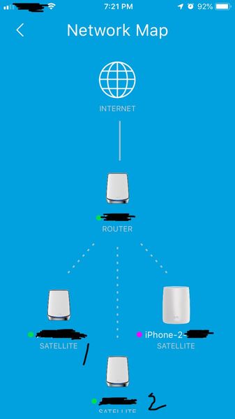 We have been using the Orbi RBK750S wifi 6 mesh system for four months. Last week my wife’s iPhone 7 first started showing up as a satellite on the Network Map of the Orbi app. We have 2 satellites b...