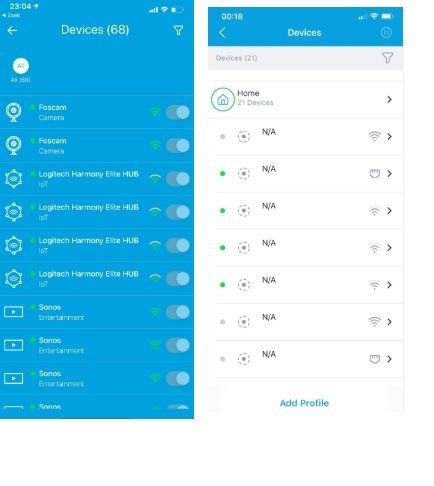 The left picture looks like the typical Orbi 'app' Device Manager. The right picture looks very much like Smart Parental Controls. (Notice the Category "Home" and the option to "Add a Profile" at the bottom).