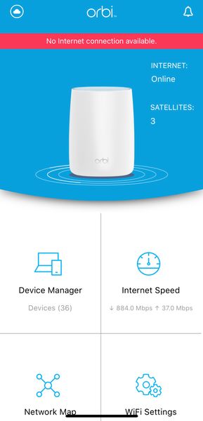 Orbi RBR50 has GREAT internet connection, yet Orbi App displays "No internet connection available."