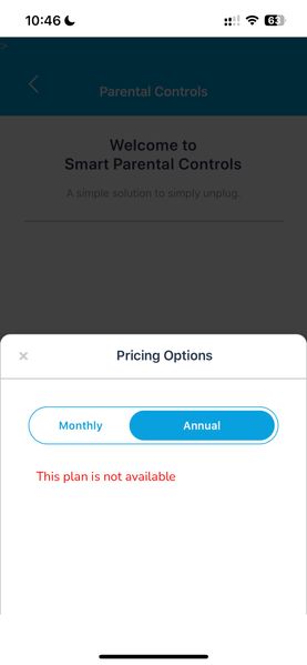 Hello, My trial period for Smart Parental Controls expired and I'm unable to view and subscribe to the premium offering; I get the attached error "This plan is not available." I've power cycled, re...