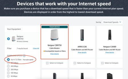 I pay for 1.2 Tbps down/40 Gbps up through Xfinity and purchased the Orbi CBR750 at the behest of the Xfinity tech that advised me to purchase a DOCSIS 3.1 modem so I can take advantage of the speeds...