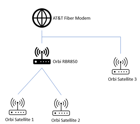 - Place the Orbi router in the garage. Use that ethernet cable to connect one satellite.