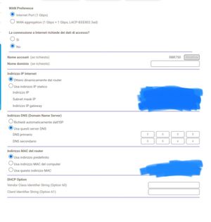 I don't know Italian that well, however I believe you have the correct configuration on the Orbi system. Automatic DHCP for the WAN side. You can set automatic for DNS or use custom DNS there.