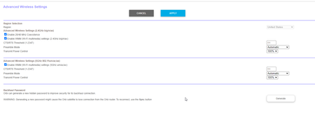 Armor, and Traffic Meter and Set 20/40Mhz Coexistence to 40Mhz only. Set CTS to 2347. Set Short preamble instead of Long preamble modes. Save settings and reboot the router and satellite(s). Under Advanced Tab/Advanced Settings/Wireless Settings.